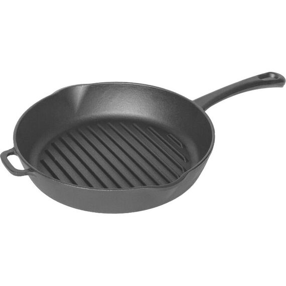 литая ручка, 2 слива/ Объем, л./размер, см: 24см Материал: чугун Толщина дна: 8.1 Толщина стенок: 3.5 Источник тепла: Все виды плит