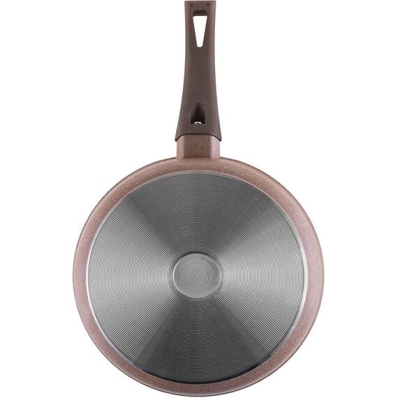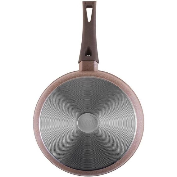Материала: литой алюминий Толщина дна 5 мм Толщина стенок 3,5 мм. 2-х слойное антипригарное покрытие Greblon C2+ Ручка эргономичной формы с мягким силиконовым покрытием soft-touch не нагревается и обеспечивает хорошую фиксацию. Можно мыть в посудомоечной машине Подходит для всех типов плит, кроме индукционных