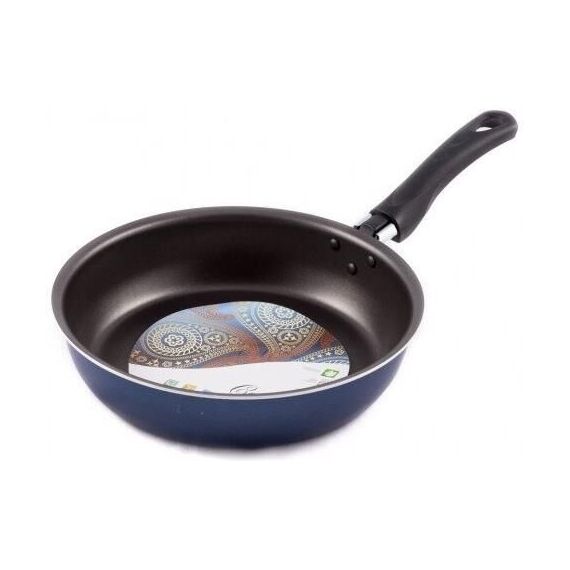 Сковорода Сатин диаметром 26 см простая, легкая и надежная посуда на каждый день по доступной цене. Европейское антипригарное покрытие внутри надежно защищает еду от пригорания, внешний слой декоративного покрытия также имеет антипригарные свойства, легко моется и долго сохраняет аккуратный вид и насыщенный синий цвет. Прочный корпус из штампованного алюминия с эргономичной бакелитовой ручкой делает использование сковороды удобным и безопасным.