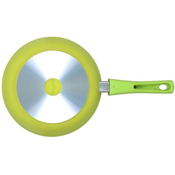 Сковорода а/пр литая 24см съемн/руч Trendy style lime, изготовлена из литого алюминия толщина стенки- 4,5мм; Толщина дна- 6 мм. Подходит для всех типов плит, кроме индукционных. Можно мыть в посудомоечной машине.