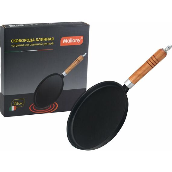 - Съемная деревянная ручка - Защитное масляное термопокрытие - Диаметр: 23 см -Толщина стенок - 4,95 мм - Вес 1,5 кг Безопасна для здоровья. Безупречные антипригарные свойства. Материал - чугун, дерево Упаковка: цветная коробка Нельзя мыть в посудомоечной машине. Подходит для всех типов плит. Правила по уходу указаны на упаковке товара.