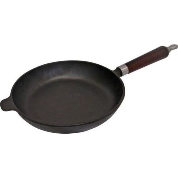 Защитное масляное термопокрытие - Деревянная ручка - Диаметр: 26 см - Высота бортов: 5 см. - Вес: 2,80 кг. - толщина дна 4 мм, толщина стенок — 4.79 мм Безопасна для здоровья. Безупречные антипригарные свойства. Подходит для всех типов плит. Материал: чугун, дерево. Упаковка: цветной рукав, полиэтил пакет. Нельзя мыть в посудомоечной машине. Правила по уходу указаны на упаковке товара.