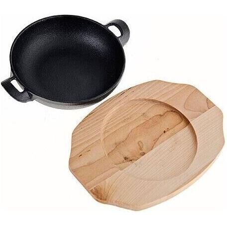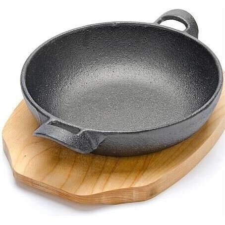 Сковорода на подставке МВ (х12). Материал: чугун, дерево. Форма: круглая. Размер сковороды: 21 х 16 х 4,5 см. Размер подставки: 23 х 16,5 х 1,5 см. Вес: 950 г. Страна производитель: Китай.