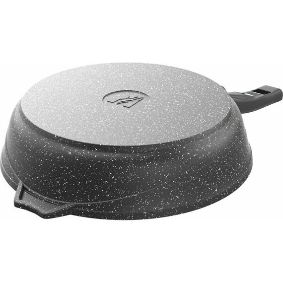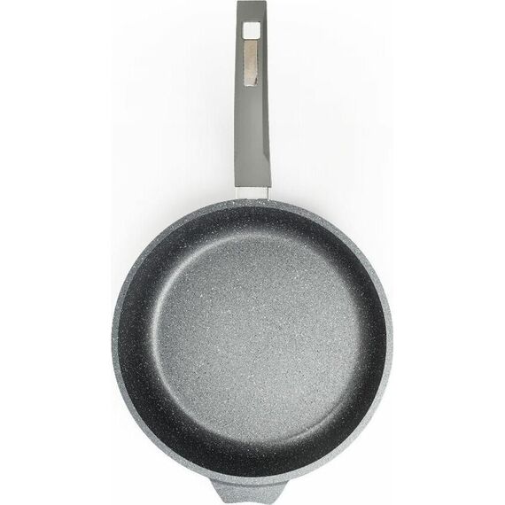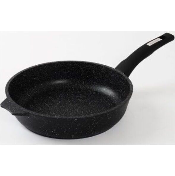 Сковорода 20 см с антипригарным покрынием и несъемной ручкой серии "Гранит black". Подходит для всех типов плит, кроме индукционных. Можно использовать в посудомоечной машине.