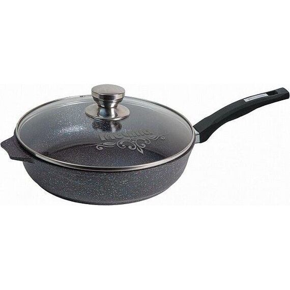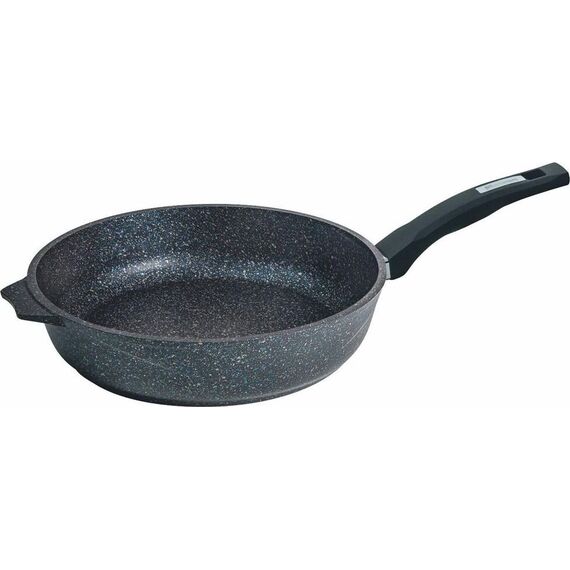 Сковорода 26см с антипригарным покрынием и несъемной ручкой серии "Гранит black". Подходит для всех типов плит, кроме индукционных. Можно использовать в посудомоечной машине.