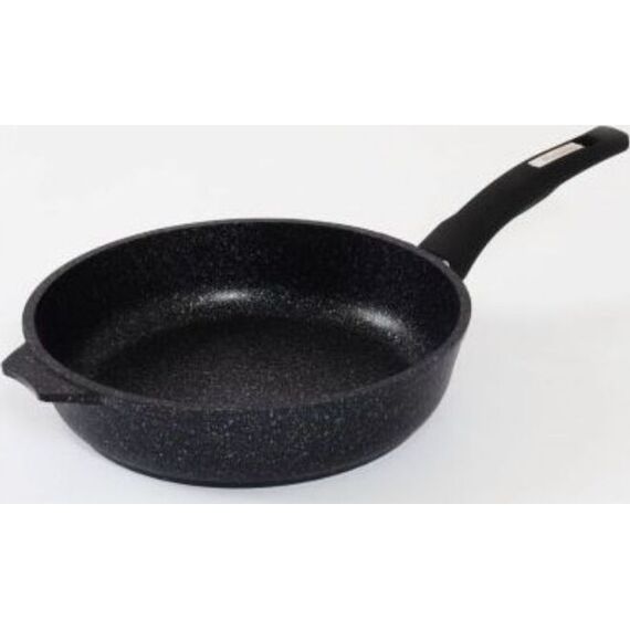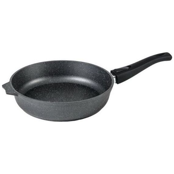 Сковорода 30см с антипригарным покрынием и несъемной ручкой серии "Гранит star". Подходит для всех типов плит, кроме индукционных. Можно использовать в посудомоечной машине.