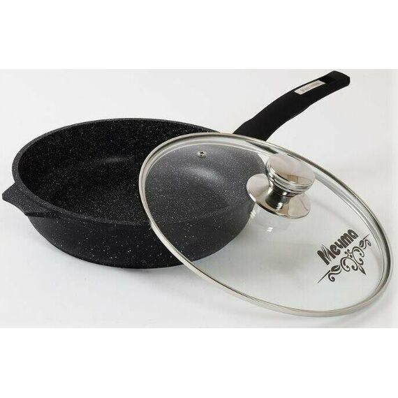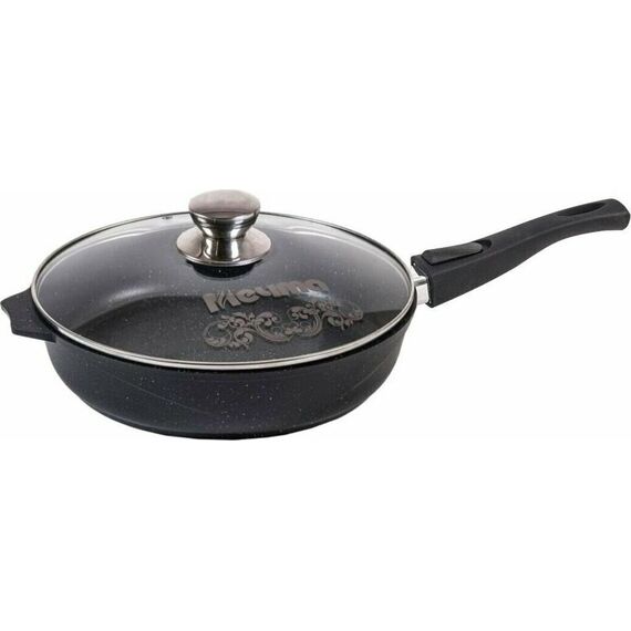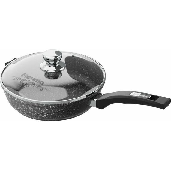 Сковорода МЕЧТА С26802 Гранит black 26см с несъемной ручкой и стекл. крышкой