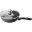 Сковорода 26см с антипригарным покрытием, несъемной ручкой и стеклянной крышкой серии "Гранит black". Подходит для всех типов плит, кроме индукционных. Можно использовать в посудомоечной машине.