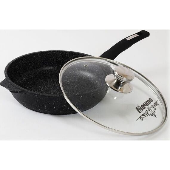 Сковорода МЕЧТА С28802 Гранит black 28см с несъемной ручкой и стекл. крышкой