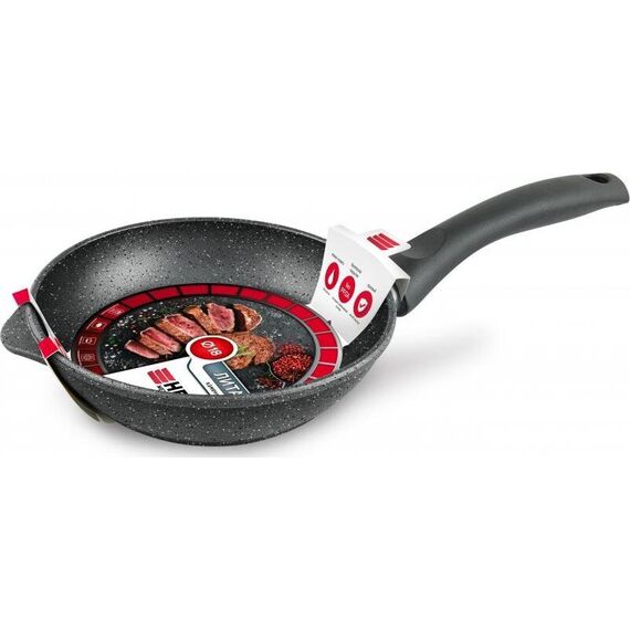 Корпус сковороды из литого алюминия не подвержен деформации (в отличие от штампованного) и гарантирует равномерный нагрев. Сковорода подходит для разогрева пищи, обжаривания овощной нарезки, приготовления легких и быстрых блюд (например, завтраков). Декоративный прилив может использоваться в качестве второй ручки. Благодаря качественному антипригарному покрытию позволяет избежать пригорания продуктов даже при готовке без масла. А значит, за ней просто ухаживать – легко моется обычными жидкими средствами для мытья посуды. Инновационная антипригарная система. Покрытие многослойное на водно-кремниевой основе, не содержит PFOA (перфтороктановую кислоту), безопасно для контакта с пищевыми продуктами. Тип покрытия Антипригарное Диаметр изделия 18 см Диаметр дна 15.3 см Особенности Можно использовать в посудомоечной машине, Индивидуальная маркировка Толщина дна 4 мм Толщина бортов 3 мм Материал Литой алюминий Плита Газовая, Электрическая, Стеклокерамическая Высота бортов 4.3 см Вес 0.52 кг