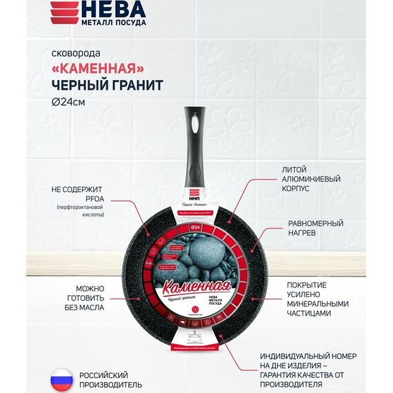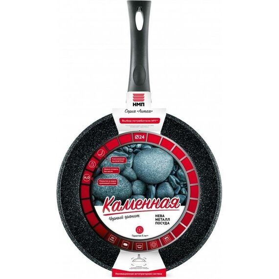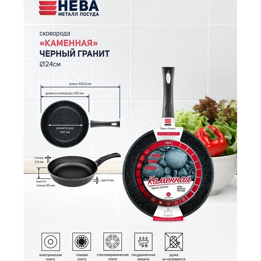 Сковорода НЕВА МЕТАЛЛ ПОСУДА 18124 а/пр литая 24см Черный гранит