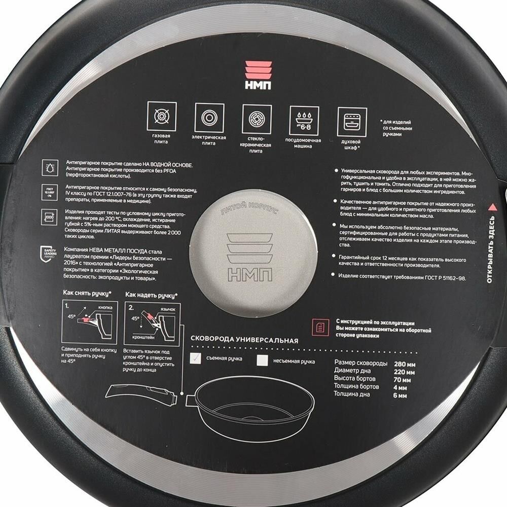 Сковорода НЕВА МЕТАЛЛ ПОСУДА 6024 д.24 съем. руч.