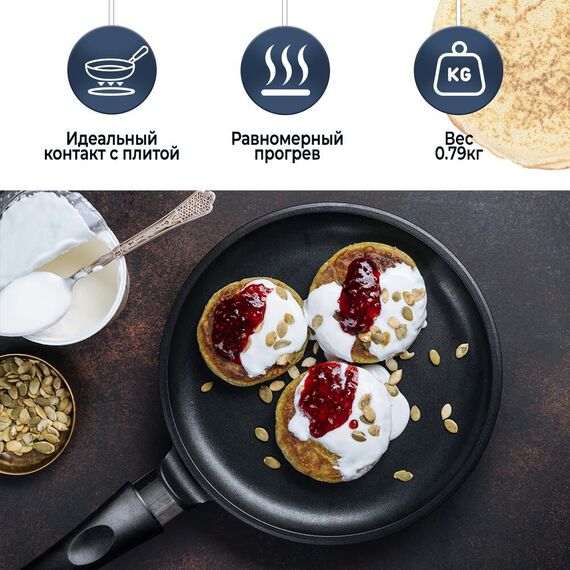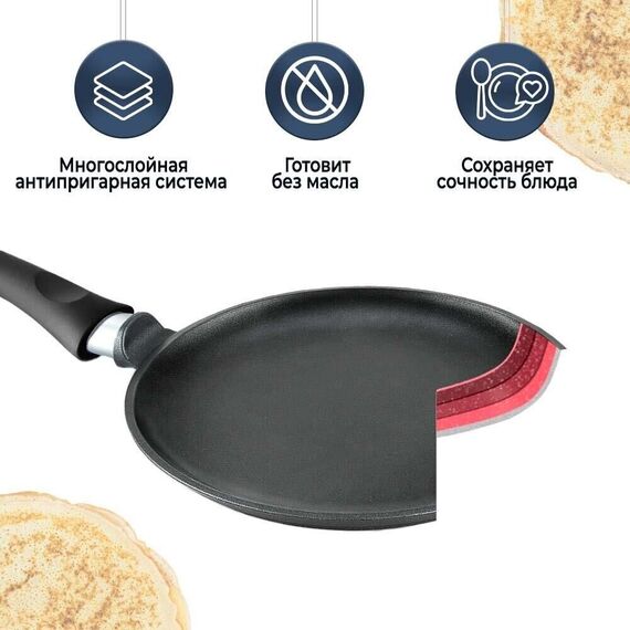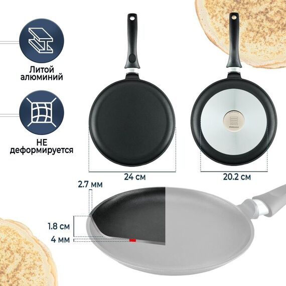 Тип покрытия Антипригарное Диаметр изделия 24 см Диаметр дна 22 см Особенности Можно использовать в посудомоечной машине Толщина дна 0.6 см Форма Круглая Материал Литой алюминий Тип посуды Блинная сковорода Плита Газовая, Электрическая, Стеклокерамическая Серия Литая Вес 1 кг