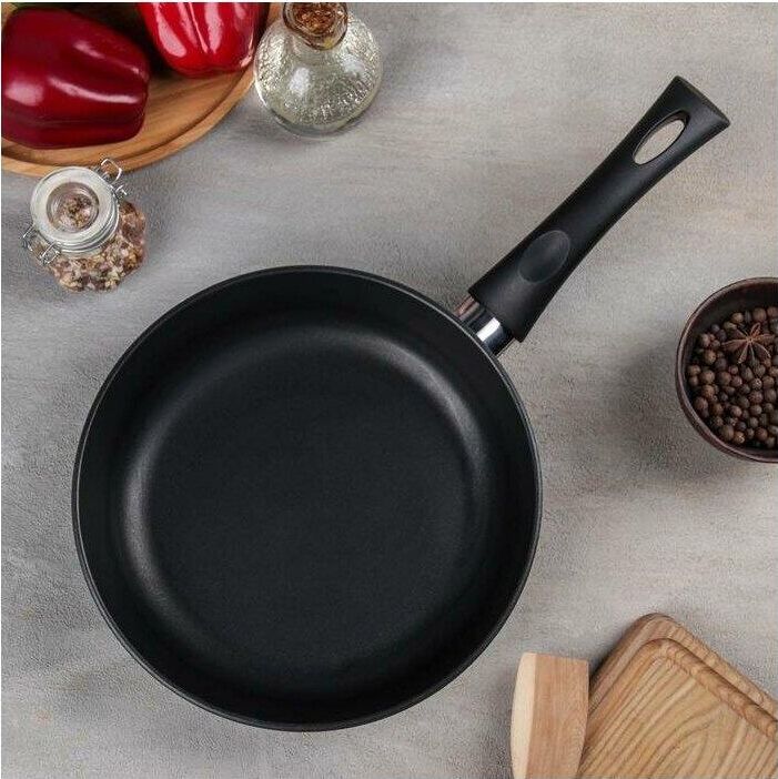 Классическая сковорода из литого алюминия с высокими бортами. 3х-слойное высококачественное антипригарное покрытие позволяет готовить без масла или с минимальным его количеством, сохраняя натуральный вкус продуктов. Покрытие не содержит PFOA, безопасно для человека. Антипригарные свойства не теряются даже при внешних механических повреждениях. Правильное соотношение толщины стенок и дна обеспечат равномерный нагрев и длительное сохранение тепла. Диаметр, см 24 Высота стенок, мм 60 Толщина стенок, мм 3 Толщина дна, мм 4 Вес, кг 1.1 Материалы и цвет Материал сковороды алюминий Материал ручек бакелит Внутреннее покрытие антипригарное Цвет черный