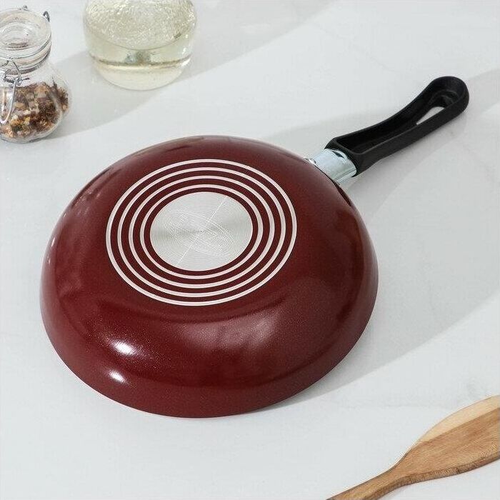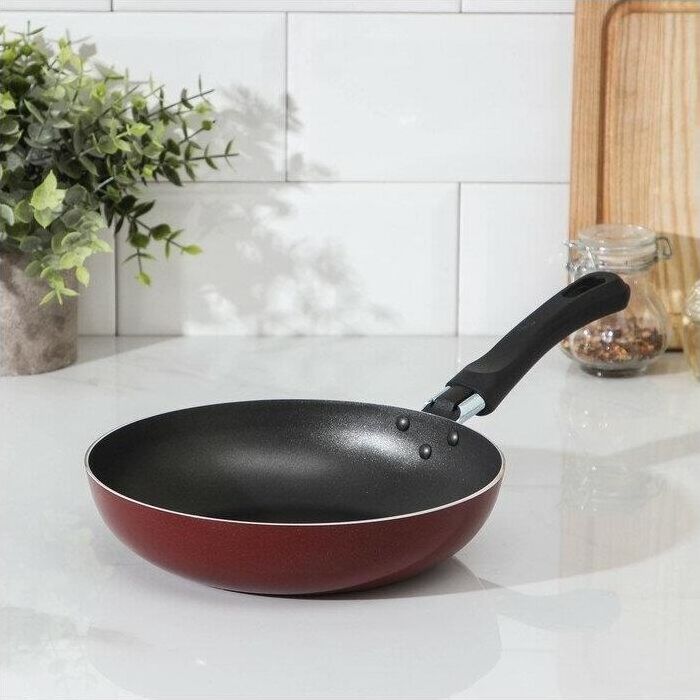 Диаметр 20см. Основание алюминий 1,8 мм. Внешнее покрытие декоративное, цвет- бордовый. Европейская фурнитура. Быстрый и равномерный нагрев. Высокие антипригарные свойства. Подходит для газовых плит, стеклокерамических плит и электроплит. Можно мыть в посудомоечной машине.
