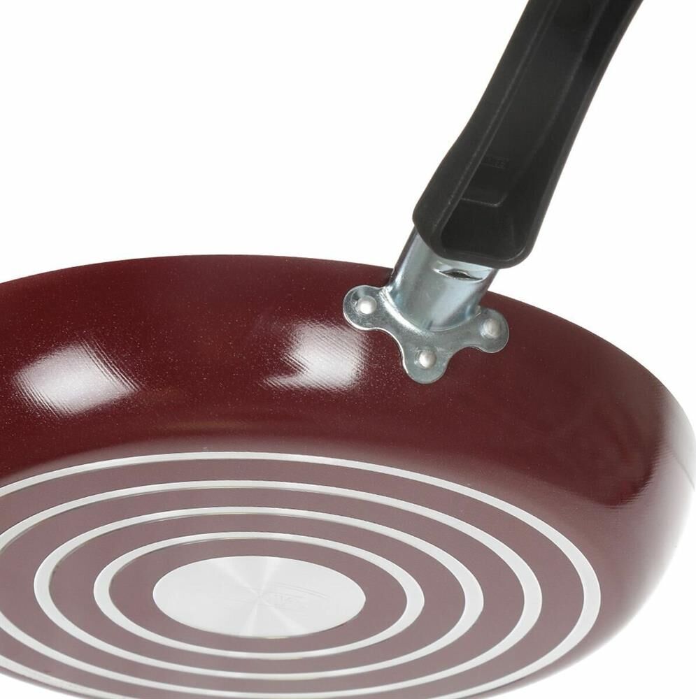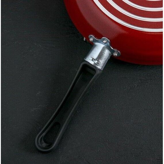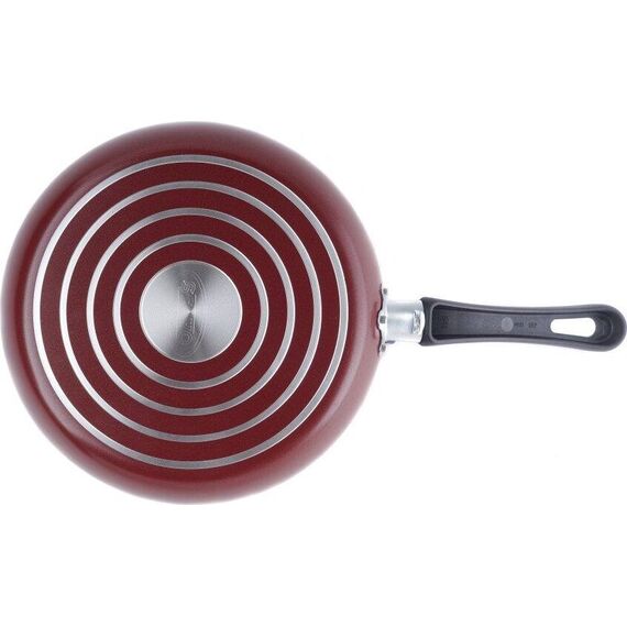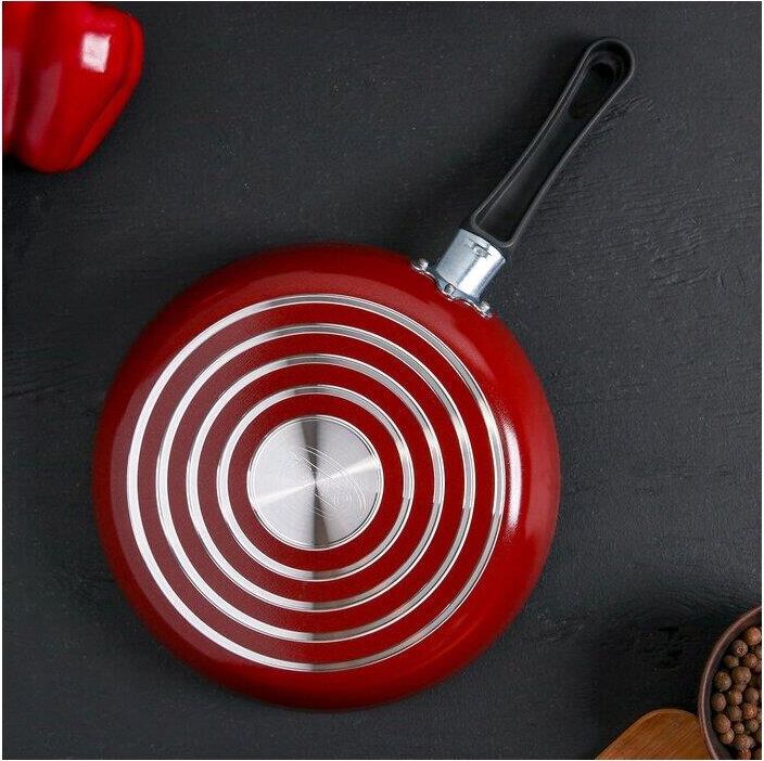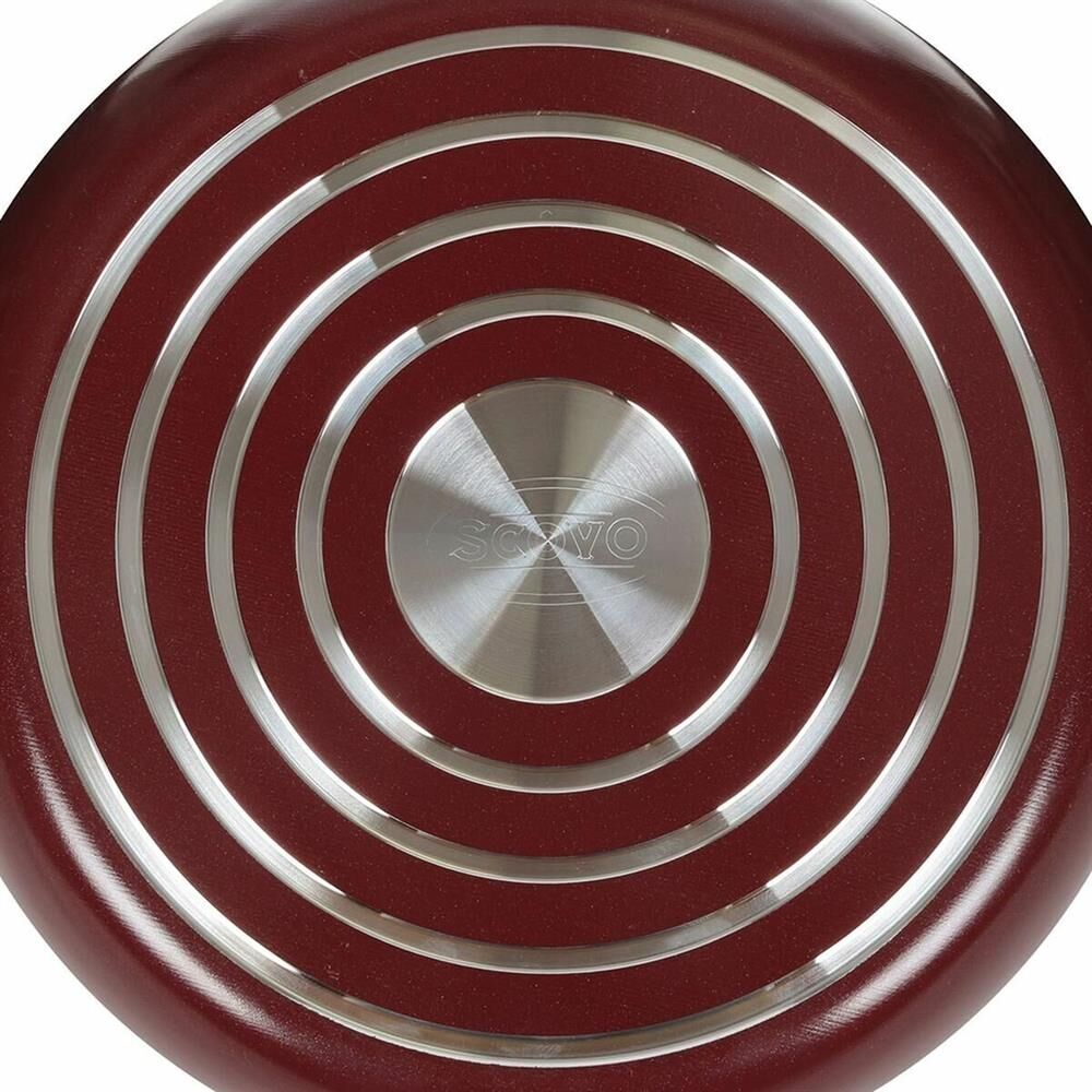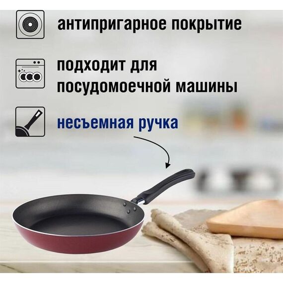 Диаметр 22см. Основание алюминий 1,8 мм. Внешнее покрытие декоративное, цвет- бордовый. Европейская фурнитура. Быстрый и равномерный нагрев. Высокие антипригарные свойства. Подходит для газовых плит, стеклокерамических плит и электроплит. Можно мыть в посудомоечной машине.