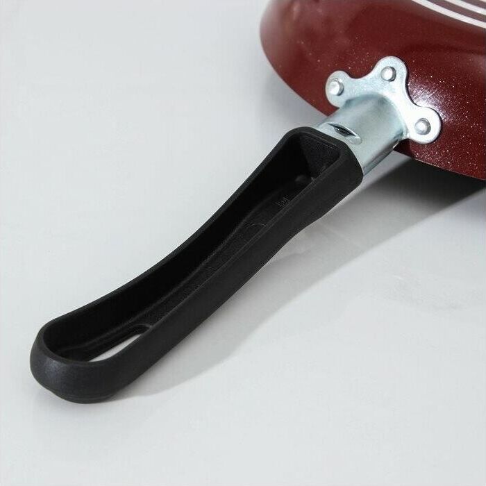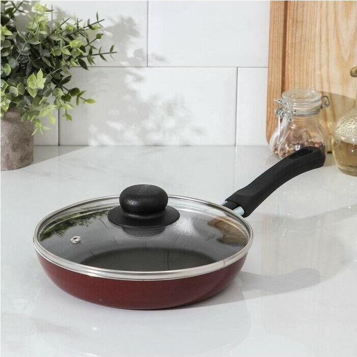 Диаметр 20см. Крышка стекл. Основание алюминий 1,8 мм. Внешнее покрытие декоративное, цвет- бордовый. Европейская фурнитура. Быстрый и равномерный нагрев. Высокие антипригарные свойства. Подходит для газовых плит, стеклокерамических плит и электроплит. Можно мыть в посудомоечной машине.