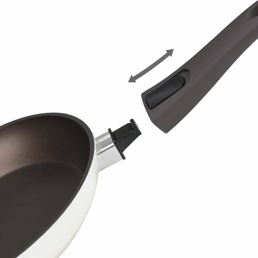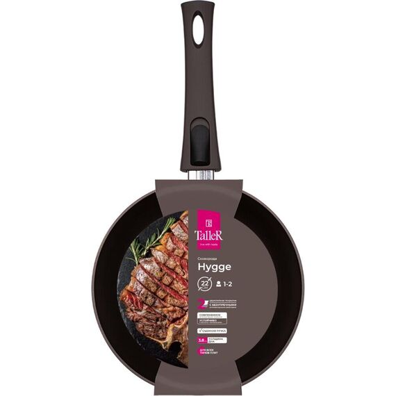 Сковорода Hygge, 22 см, с бакелитовой съемной ручкой. Материал: кованый алюминий, толщина дна 3,8 мм, толщина стенок 3,3 мм Высота 4,5 см внешний диаметр дна – 17.8 см Подходит для всех типов плит, включая индукционную. Рекомендовано ручное мытьё. Упаков