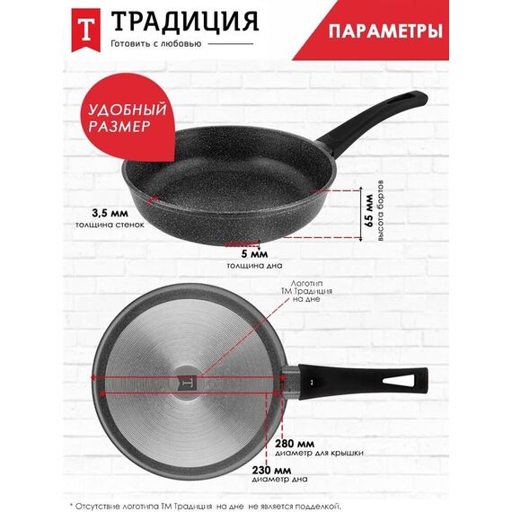 Сковорода ТРАДИЦИЯ ТА2281 а/пр литая 28см Антрацит