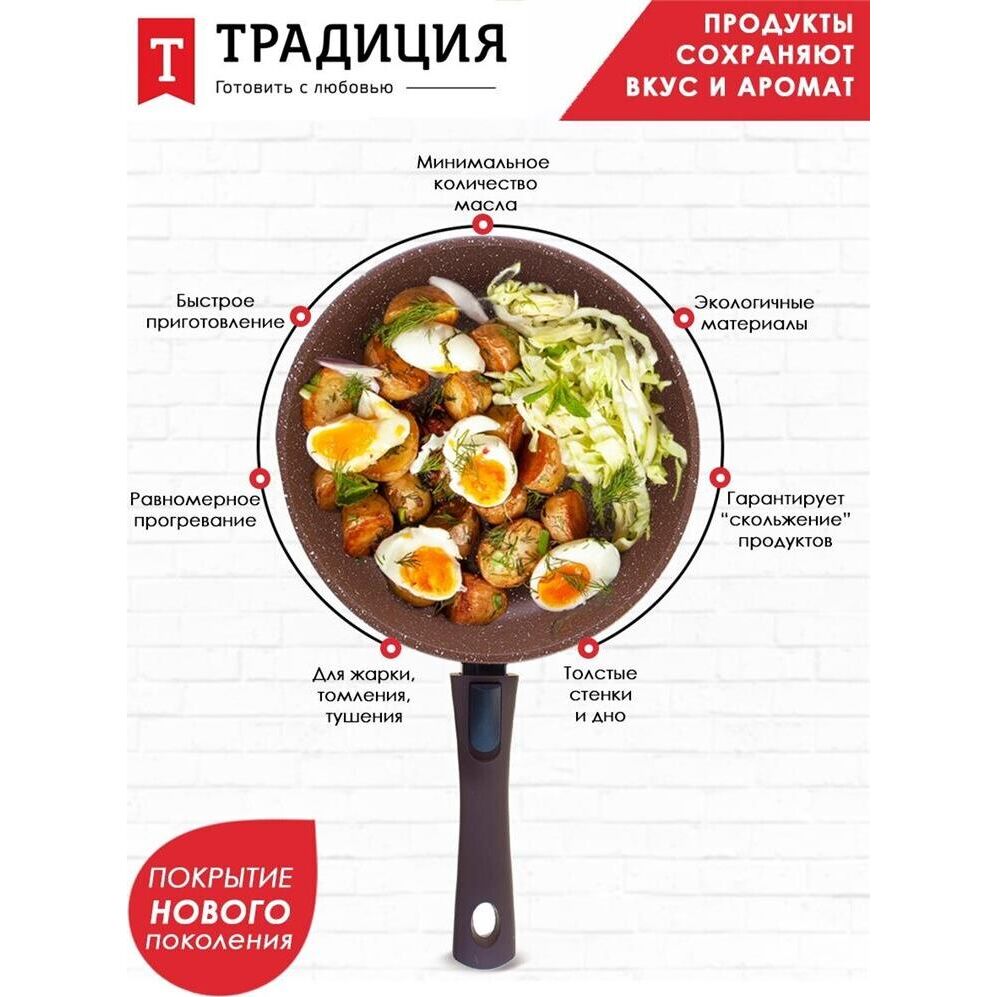Сковорода ТРАДИЦИЯ ТД2265 антипригарная литая 26см съемн/руч Доломит