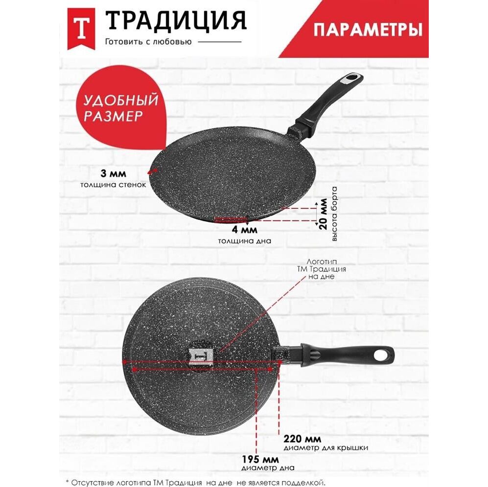 Сковорода ТРАДИЦИЯ ТГ6221 Гранит 22 см. литой алюм.