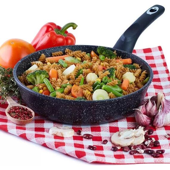 Размер, см: 24см Материал: литой алюминий Коллекция/серия: Гранит плюс Толщина дна: 6 Толщина стенок: 4.8 Источник тепла: Все виды плит, в том числе индукционная Тип упаковки: цветной рукав Внутреннее покрытие: антипригарное покрытие Greblon NewTec C2+ Внешнее покрытие: антипригарное покрытие Greblon NewTec C2+