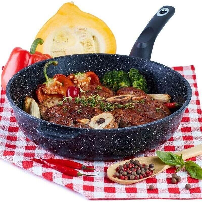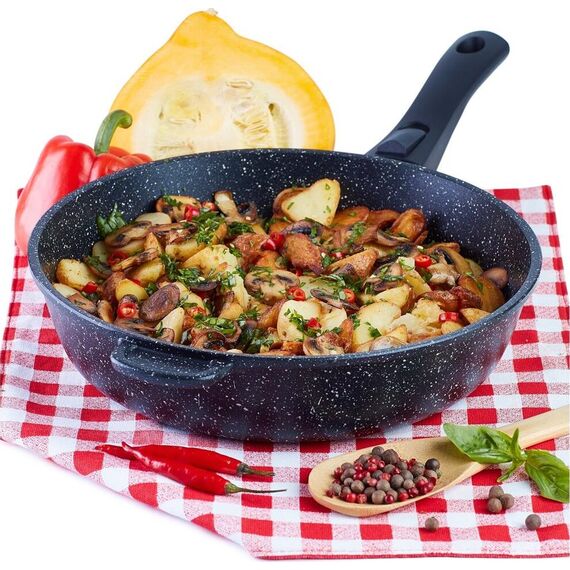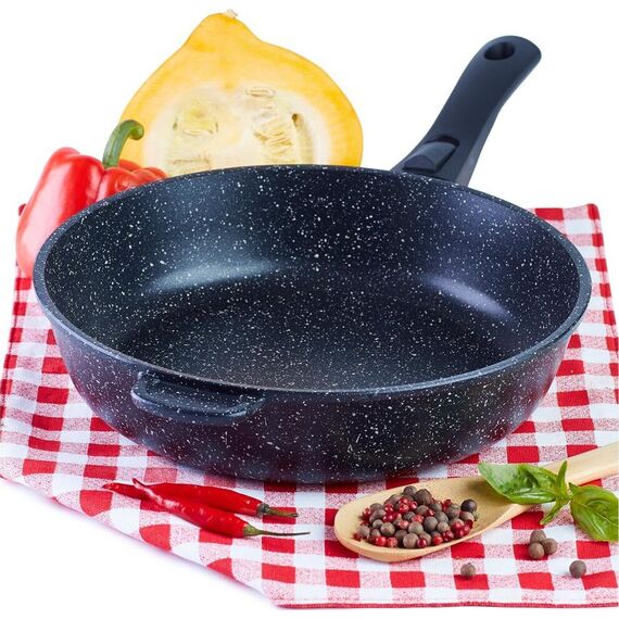 Размер, см: 28см Материал: литой алюминий Коллекция/серия: Гранит плюс Толщина дна: 6 Толщина стенок: 4.8 Источник тепла: Все виды плит, в том числе индукционная Тип упаковки: цветной рукав Внутреннее покрытие: антипригарное покрытие Greblon NewTec C2+ Внешнее покрытие: антипригарное покрытие Greblon NewTec C2+