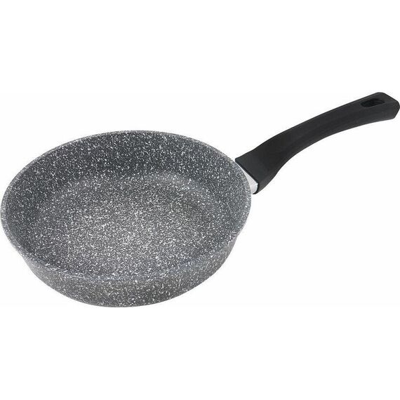 Сковорода 22 см Мрамор. Материал: пищевой литой алюминий. Антипригарное мраморное покрытие. Подходит для всех тип плит, в том числе индукционных. Не нагревающиеся бакелитовая ручка, легко чистится. Можно мыть в посудомоечной машине. Без крышки.