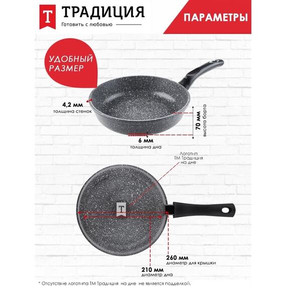 Сковорода ТРАДИЦИЯ ТМ2261И а/пр литая 26см Мрамор индукция