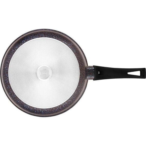 Сковорода а/пр литая 24см Сапфир ТМ Традиция, мраморное покрытие, изготовлена из литого алюминия толщина стенки- 3,5 мм; Толщина дна- 5,0 мм. Подходит для всех типов плит, кроме индукционных. Можно мыть в посудомоечной машине. Произведено в РОССИИ.