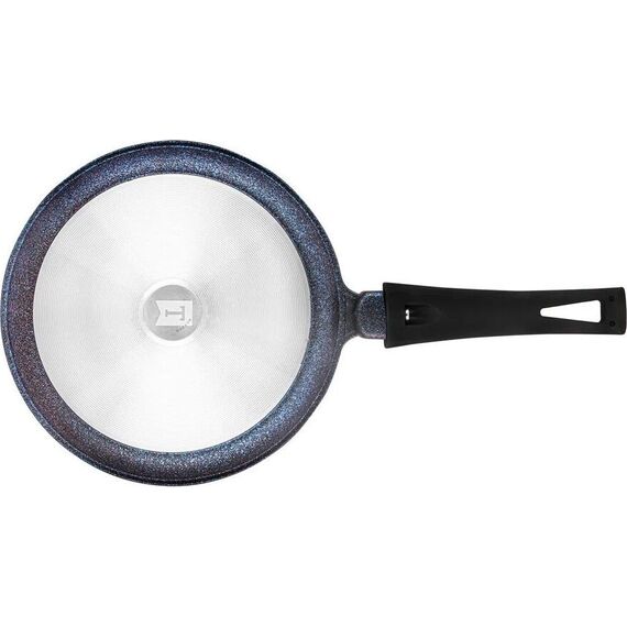 Блинница а/пр литая 22см Сапфир ТМ Традиция, мраморное покрытие, изготовлена из литого алюминия толщина стенки- 3,0 мм; Толщина дна- 4,5 мм. Подходит для всех типов плит, кроме индукционных. Можно мыть в посудомоечной машине. Произведено в РОССИИ.