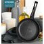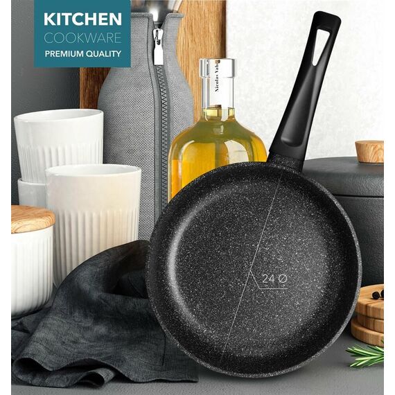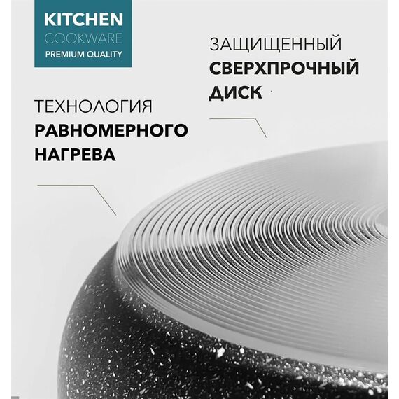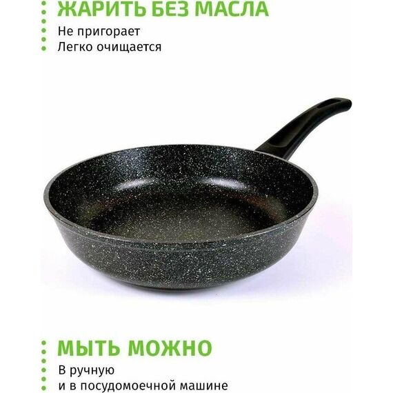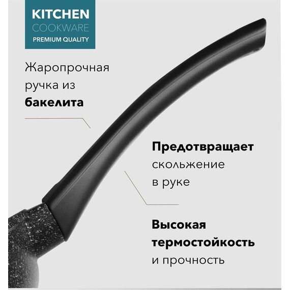 Сковороды изготовлены из пищевого алюминия современным методом литья с кристаллизацией под давлением и покрыты усиленным двухслойным антипригарным покрытием «Greblon Non Stick C2+» (Германия) толщиной около 30 мкм. Это покрытие выдерживает не менее 3,5 тысячи условных циклов приготовления пищи, что позволяет сковороде прослужить несколько лет. Увеличенная толщина дна (до 5 мм) и высокие стенки (55 – 65 мм) сковород позволяют не только жарить или разогревать различные блюда, но и тушить. Фиксированные эргономичные ручки с покрытием Soft-touch, не нагреваются. Сковороды серии «Вдохновение» изготовлены в современном дизайне, имитирующем камень, оригинально и стильно смотрятся в интерьере любой кухни.