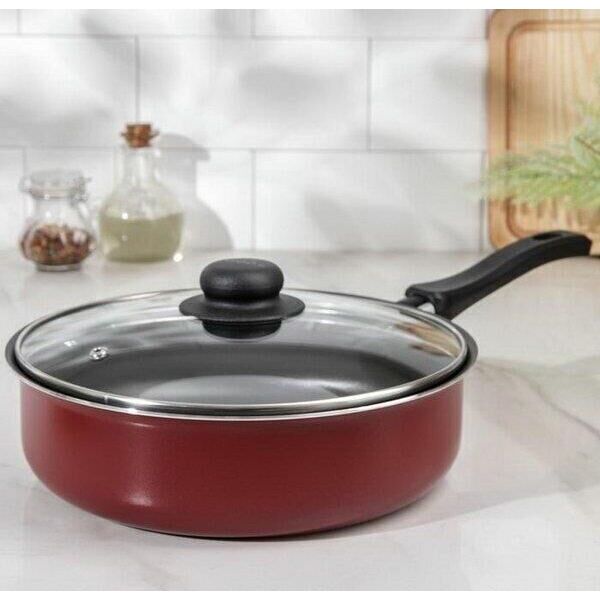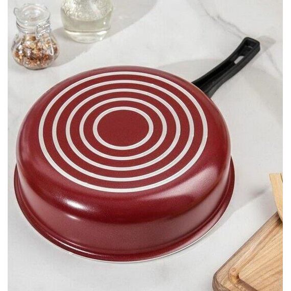 Сотейник Expert, диаметр 24см с антипригарным покрытием, со стеклянной крышкой. Крышка: Стекло с пароотводом и металлическим ободком. Материал: Штампованный алюминий. Цвет: Бордовый. Подходит для газовых плит, стеклокерамических плит и электроплит. Можно мыть в посудомоечной машине.