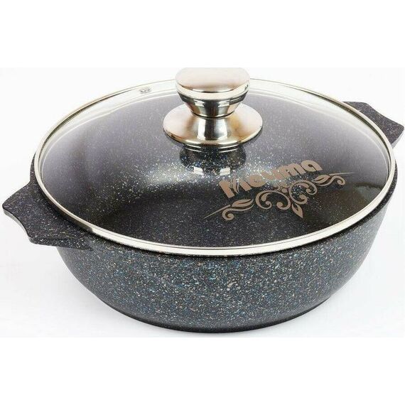 Жаровня 2.4л с антипригарным покрытием и стеклянной крышкой серии "Гранит star" Подходит для всех типов плит, кроме индукционных. Можно использовать в посудомоечной машине. Можно использовать в духовке отдельно без крышки.