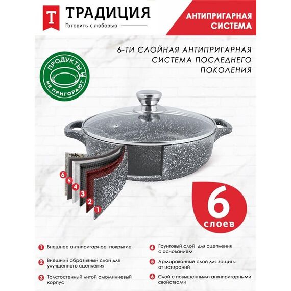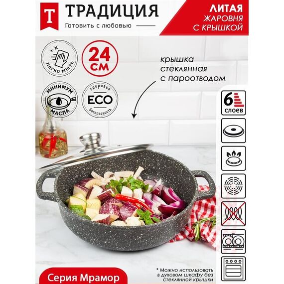 Жаровня ТРАДИЦИЯ ТМ9243 Жаровня а/пр литая 24см стекл/кр Мрамор
