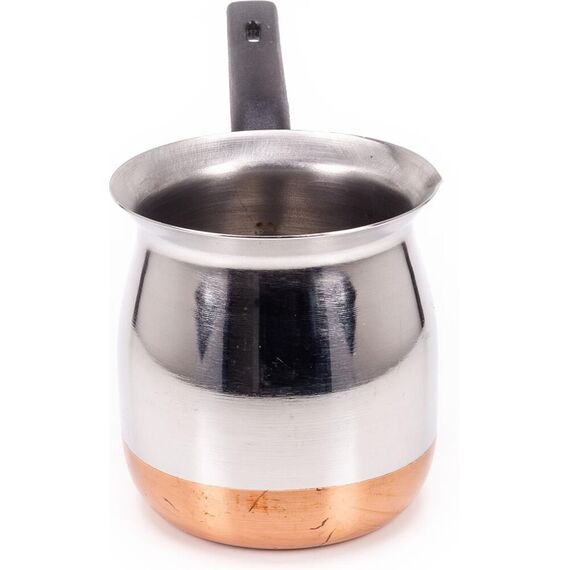 Кофеварка стальная c медным дном Объем: 650мл Материал: нержавеющая сталь 14/1, медь Ручка: бакелит Толщина металла: 0, 7 мм Упаковка — стикер, полиэтиленовый пакет. Не рекомендуется мыть в посудомоечной машине. Не подходят для индукции.