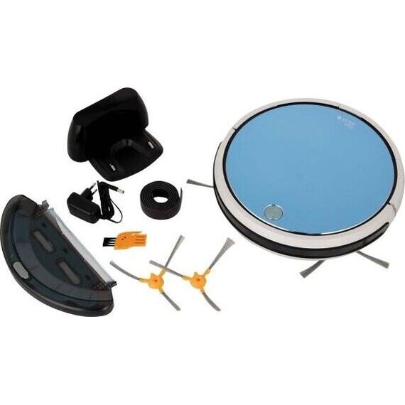Робот-пылесос. Тип аккумуляторная батарея: (Li-Ion), Время заряда аккумулятора: 5 часов, Время работы от аккумулятора до 2 часов, Кол-во режимов работы: 4, Wi-Fi управление: ДА, Гироскопическая система навигации: ДА, Автоматическая установка на зарядку: ДА, HEPA-фильтр, Влажная уборка, Встроенная вращающаяся основная щетка, Допустимая высота коврового покрытия: 1 см, Звуковая индикация, Индикация степени зарядки и застревания, Кол-во инфракрасных датчиков препятствий: 11 пар, Кол-во пар инфракрасных датчиков определения ступенек: 3, Магнитная лента, Насадка для мытья полов: 1, Объем пылесборника: 0,5 литра, Объем резервуара для воды: 0,1 литра, Кол-во боковых щеток: 2, Мощность всасывания: 500 Па, Таймер, Уровень шума: 65, Корпус: алюминий/пластик, Цвет: Белый/голубой