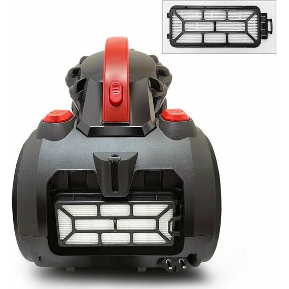 Мощность двигателя 2100Вт Легко очищающийся двойной циклонный фильтр. Металлическая Телескопическая трубка Обрезиненные колеса - не царапают пол 3 уровня фильтрации