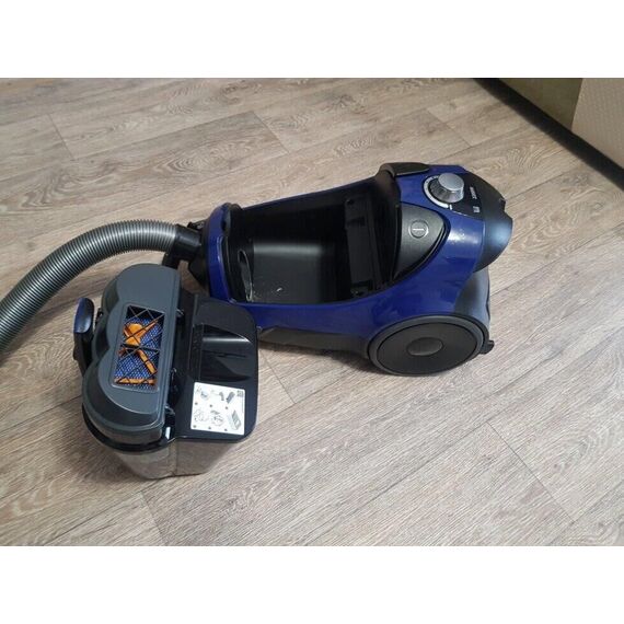Тип Двухкамерный. Емкость пылесборника 2 л. Макс. потребляемая мощность 2200 Вт. Уровень шума 80 дБА. Мощность всасывания 430 Вт. Управление мощностью На корпусе. Прорезиненные колеса Да. Автосматывание сетевого шнура Да. Проверка состояния фильтра Да. Выпускной фильтр HEPA H13. Тип трубки Сталь. Поворотный шланг (360 градусов). Длина сетевого шнура 7 м. Радиус зоны уборки 10 м.