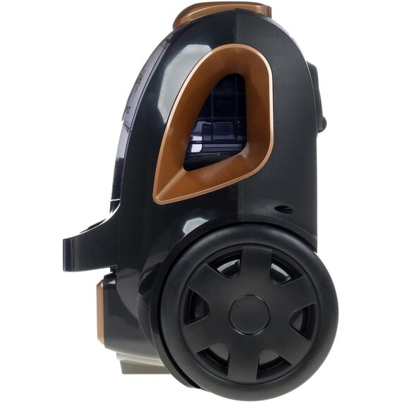 Мощный двигатель 2400 Вт. Мощность всасывания 450 Вт. Объем пылесборника 2 л. HEPA фильтр. Циклонный тип. LED-индикатор заполнения пылесборника. Автоматическое сматывание шнура. Металлическая хромированная телескопическая труба. Длина шнур а4.7 м. Высокоэффективная маневренная щетка с переключателем ковер/пол.