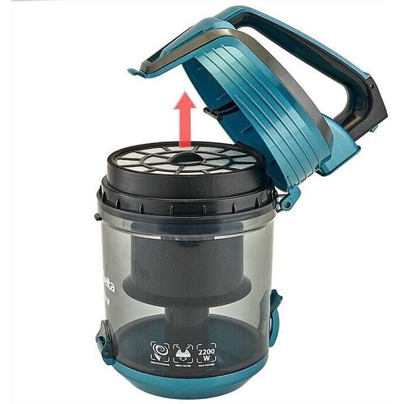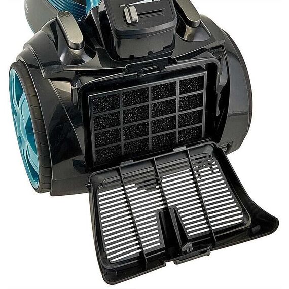 Максимальная мощность 2200 Вт Номинальная потребляемая мощность 1400 Вт Мощность всасывания 350 Вт Объём контейнера для сбора пыли 4 л Уровень шума ≤ 85 дБ Длина шнура питания 5 м Описание Пылесос электрический предназначен для сухой уборки помещений, чистки одежды, ковров и мягкой мебели, а также для других работ, связанных с использованием разрежения воздуха в бытовых и аналогичных им условиях Цвет: черный с бирюзовым Система «Мультициклон», обеспечивающая эффективную уборку без использования мешка для сбора пыли Съемный чистящийся HEPA-фильтр Многоуровневая система фильтрации Регулятор потока воздуха на ручке Металлическая телескопическая труба Вертикальная парковка трубы всасывания на корпусе Шланг с ручкой Насадка «ковер-пол» Дополнительная комбинированная щелевая насадка Удобная ручка для переноски Автоматическое сматывание шнура питания Защита от перегрева