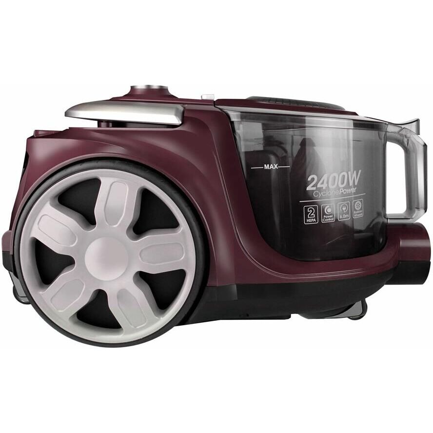 Мощность двигателя 2400 Вт. Легко очищающийся циклонный фильтр. Объем пылесборника 4.0 литра. Металлическая Телескопическая трубка. Обрезиненные колеса - не царапают пол. Металлическая щетка. HEPA фильтр. Регулятор мощности.