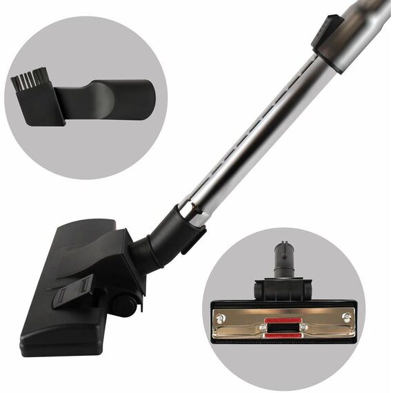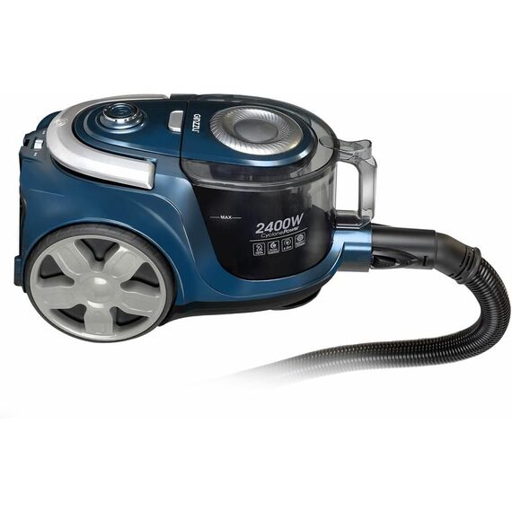 Мощность двигателя 2400 Вт. Легко очищающийся циклонный фильтр. Объем пылесборника 4.0 литра. Металлическая Телескопическая трубка. Обрезиненные колеса - не царапают пол. Металлическая щетка. HEPA фильтр. Регулятор мощности.
