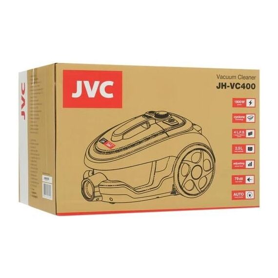 JVC JH-VC400 Тип пылесоса циклонный Емкость пылесборника, л. 2,5 Материал пылесборника пластик Мощность всасывания, Вт. 320 Регулировка мощности есть Управление воздушным потоком на ручке да Тип трубки телескопическая Материал трубки металл Система фильтрации 4-х ступенчатая система фильтрации: 4 L.F.S, моющийся НЕРА фильтр Уровень шума, дБ. 79 Смотка шнура автоматическая Функции Сухая уборка есть Особенности Вертикальная парковка да Комплектация Насадки щетка пол/ковер, щелевая насадка 2 в 1, насадка для мягкой мебели Полная комплектация пылесос, телескопическая трубка, гибкий шланг, щетка пол/ковер, щелевая насадка 2 в 1, насадка для мягкой мебели, держатель для аксессуаров, гарантийный талон, инструкция на русском языке Корпус Материал корпуса пластик Цвет серый Габариты и вес Длина сетевого шнура, м. 5 Энергопотребление Максимальная потребляемая мощность, Вт. 1800 Электропитание, В., Гц. 220-240, 50
