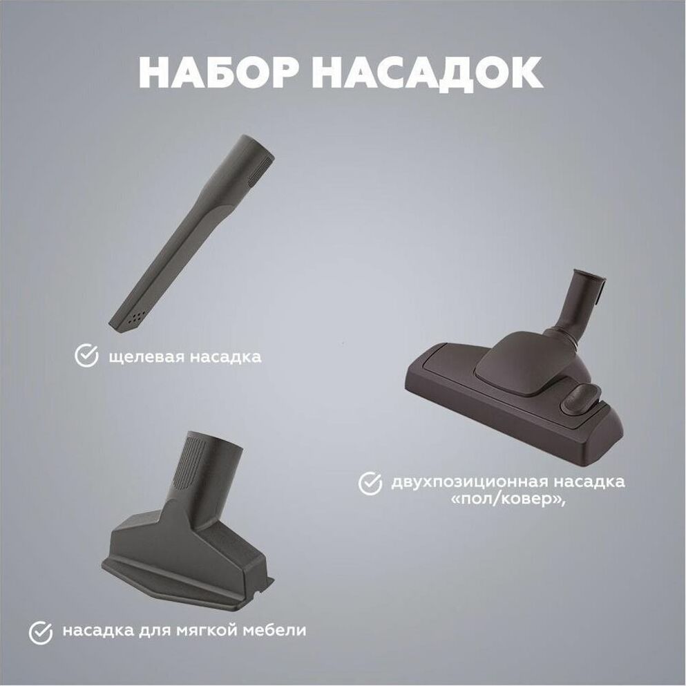 Мощность двигателя — 2300 Вт максимальная мощность всасывания 400 Вт Регулировка мощности всасывания - есть длина шнура — 5 м Радиус действия, м - до 8 м объем контейнера для сбора пыли - 2,5 л Система фильтрации - Extreme CYCLONE Количество ступеней фильтрации воздуха - 4 уровень шума ≤ 72 дБ Автоматическое сматывание шнура Вертикальная парковка Горизонтальная парковка HEPA фильтр Цвет - серый Металлическая телескопическая трубка (мин/макс), см - 50 / 82 гофрированный шланг, см - 194 Габариты в упаковке, мм - 435x345x335 Вес нетто/бруто, кг - 4,9 / 6,9 Комплект насадок: универсальная щетка «пол/ковер» Щелевая насадка Насадка для мебели