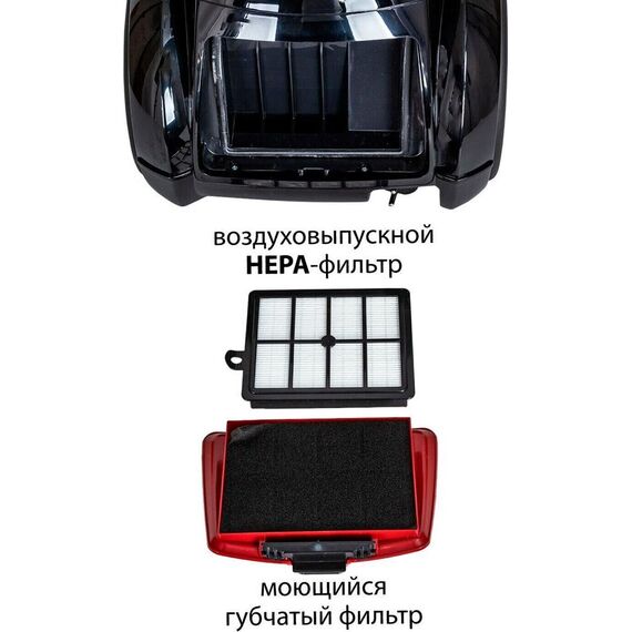 PIONEER VC355C Тип пылесоса: циклонный Емкость пылесборника, л.: 2,5 Мощность всасывания, Вт.: 400 Регулировка мощности: есть Тип трубки: телескопическая металлическая Система фильтрации: моющийся фильтр HEPA 13, моющийся защитный фильтр двигателя Уровень шума, дБ.: 84 Смотка шнура: автоматическая Тип уборки: сухая Индикатор заполнения фильтра: светодиодный Вертикальная парковка : есть Комплектация: пылесос, универсальная щетка «ковер/пол», мини-щетка ТУРБО, щелевая насадка, насадка для штор, насадка для мягкой мебели, держатель для аксессуаров, гарантийный талон, инструкция на русском языке Материал корпуса: пластик Цвет: черный с красным Длина сетевого шнура, м.: 6 Максимальная потребляемая мощность, Вт.: 2100 Электропитание, в., Гц.: 220-240, 50 Дополнительная информация: увеличенный радиус действия (до 9 м), эргономичная ручка, мотор повышенной эффективности