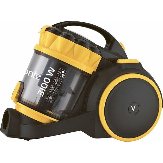 Бытовой пылесос, Мощность 3100 Вт, мощность всасывания - 600Вт, эффективная система очистки воздуха «Мультициклон» с 5-ти ступенчатой системой фильтрации воздуха, лёгкая очистка контейнера, металлическая телескопическая трубка, регулятор потока воздуха на трубке, длина шнура питания 4.5 м, автоматическая смотка шнура. В комплекте: комбинированная щётка с металлическим основанием ковёр/пол, насадка "мебель/щель".