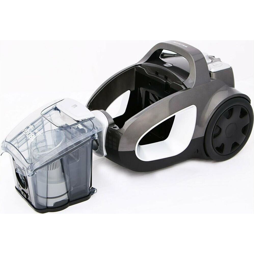 Мощность 1800Вт.Цвет серо-черный.Тип традиционный.Тип уборки сухая. Пылесборник контейнер 2 л.Фильтр тонкой очистки.Мощность всасывания 330 Вт. Труба всасывания телескопическая.Насадки в комплекте пол/ковёр, для мебели, щелевая.Регулятор мощности на корпусе.Автоматическое сматывание шнура. Ножной переключатель вкл./выкл.Вес 5кг.