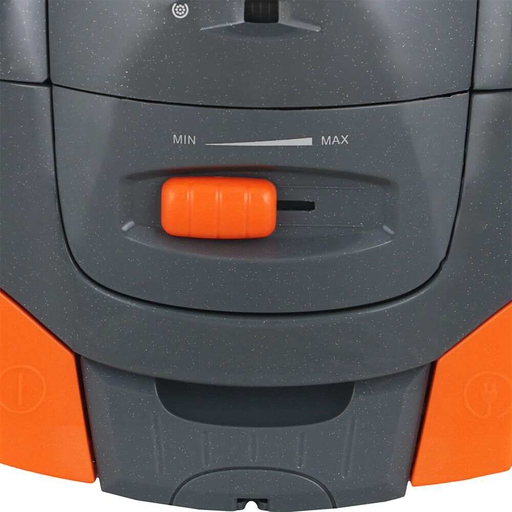 Пылесос с мешком для сбора пыли. Мощность всасывания: 400 Вт, Регулятор мощности на корпусе, Фильтр тонкой очистки, Число ступеней фильтрации: 5, Объём пылесборника: 3 литра, Тип пылесборника: мешок, Труба всасывания: телескопическая, Длина сетевого шнура: 5 метров, Настенное крепление, Индикатор заполнения пылесборника, Ножной переключатель вкл./выкл., Питание от сети, Дополнительно: 1 тканевый и 3 бумажных мешка в подарок, Номинальная потребляемая мощность: 1400 вт, Цвет: Серый/оранжевый
