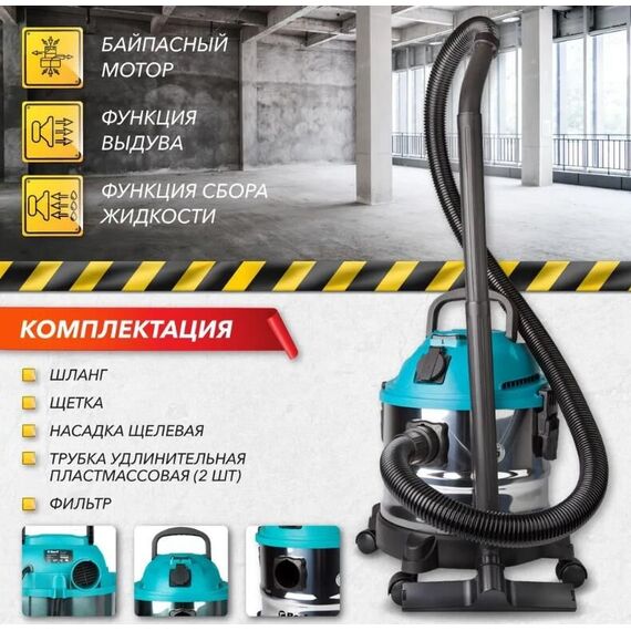 Расход воздуха 58л/сек; пылесборник 15л; Потреб мощность 1 250Вт; Разрежение 20кПа; Сухая/влажная уборка; шланг 1,5м; Диаметр шланга 35мм; Мощность всасывания 250Вт; регулировка силы всасывания; Подключение электроинструмента ; Функция автоотключения; Функция сбора жидкости; Функция выдува; Длина кабеля 3м; Уровень шума 78дБ; Вес 5кг; Напряжение 220-240В; Частота тока 50Гц